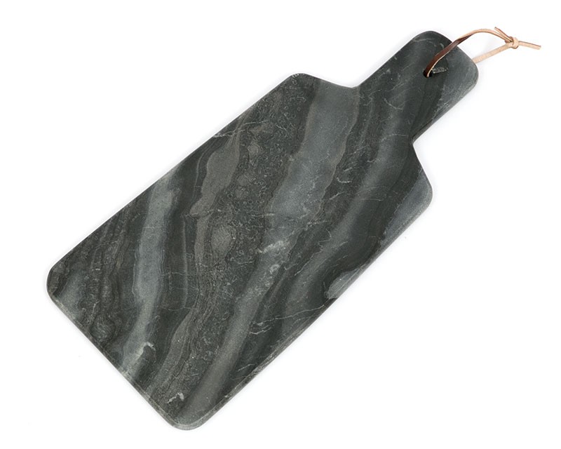 Унікальна мармурова обробна дошка графітового кольору. Необхідний кухонний допоміжний засіб, який також може бути унікальною прикрасою. Найбільшою перевагою є легке очищення, відсутність зносу робочої поверхні та відсутність часток у їжі, як це зазвичай буває з класичними дерев’яними дошками.