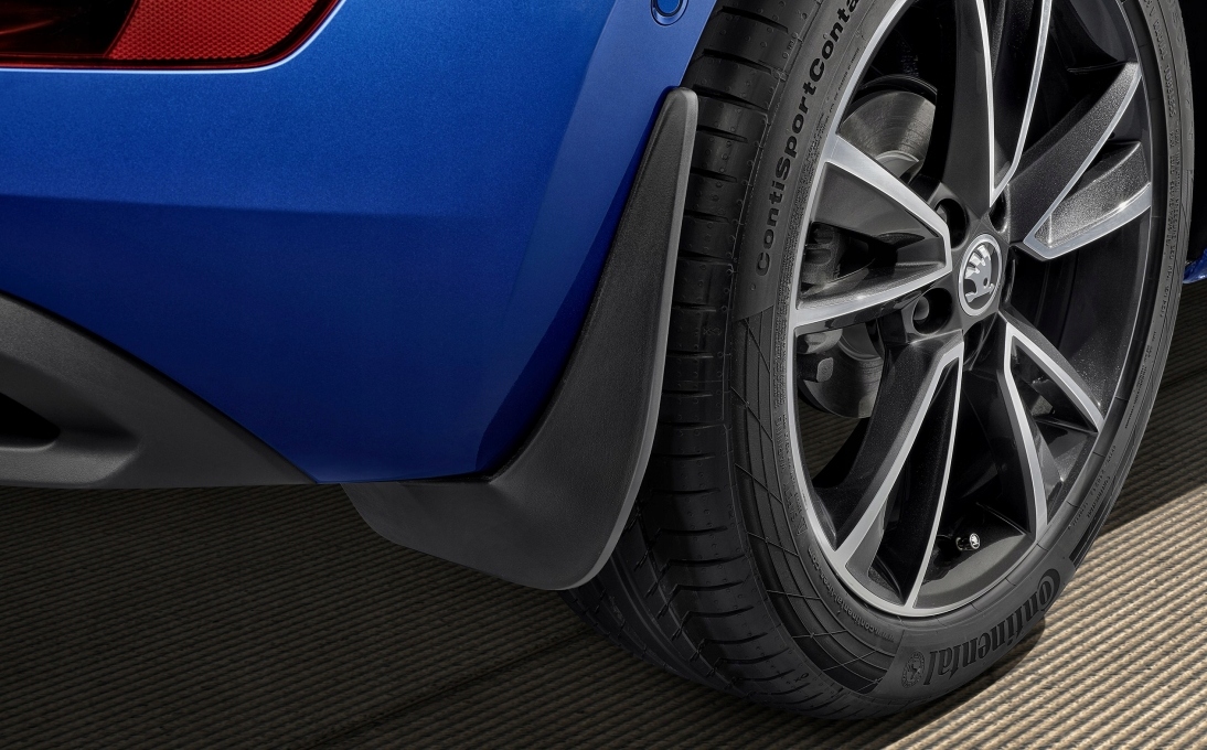 Додатковий захист від пилу та каменів: грязьові клапті захищають шасі вашої Шкоди від пилу та кам'яних стружок під час руху по важкій місцевості. Рекомендується встановити оригінальні аксесуари в майстерню або авторизованому сервісному центрі.