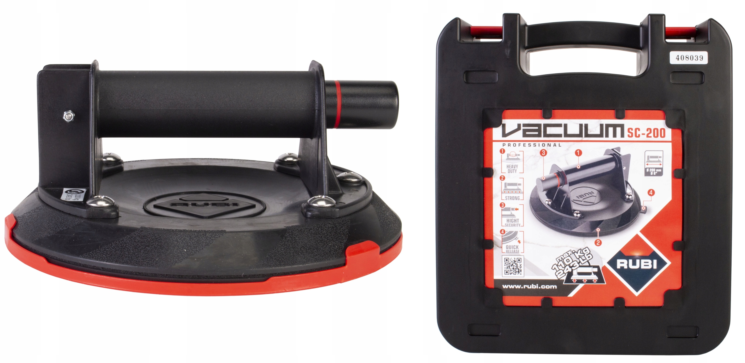 Присоска Rubi ідеально підходить для перенесення важких матеріалів, незалежно від типу поверхні. Завдяки насосу присоска добре всмоктує і тому працює з усіма видами плитки! Крім того, діаметр присоски 20 см робить її ідеальною для роботи з плиткою великого формату.
