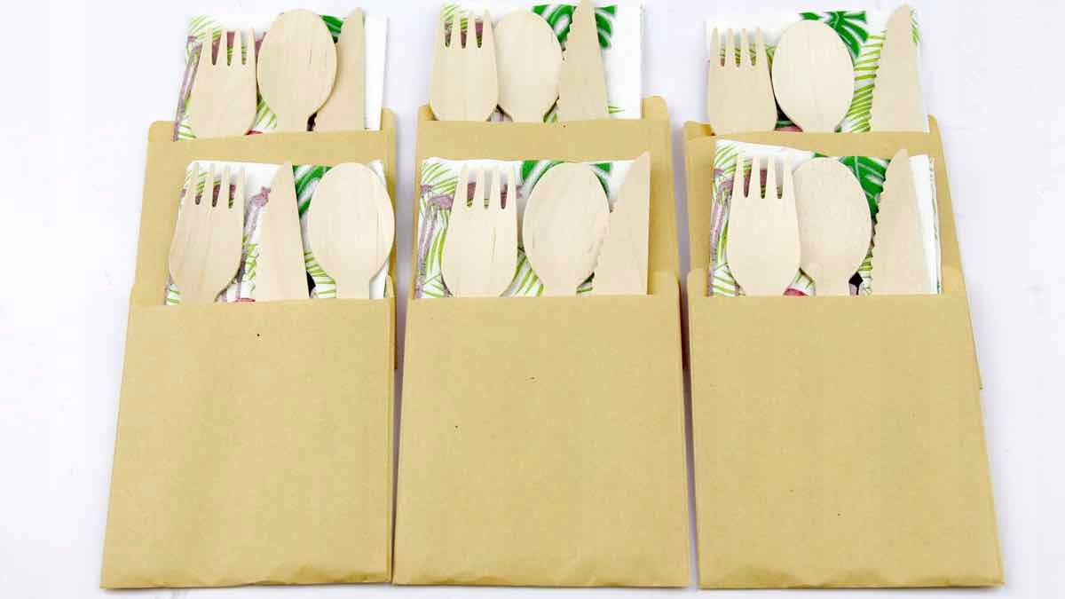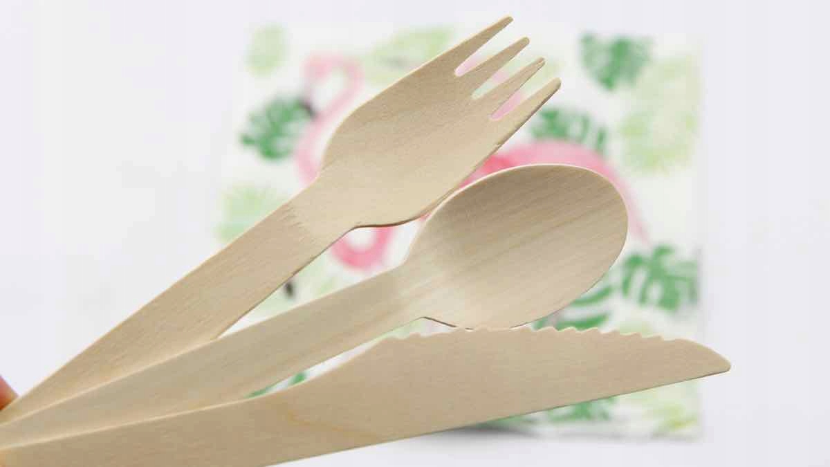 100% натуральна деревина, яка використовується для виготовлення виделки, ножа та ложки.