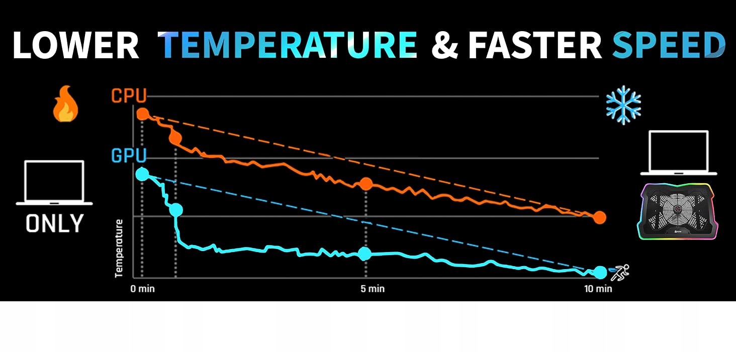 - ✅ ВЕЛИКИЙ ВЕНТИЛЯТОР ДЛЯ МАКСИМАЛЬНОГО ОХОЛОДЖЕННЯ Величезний 200-мм вентилятор KLIM Ultimate розсіює тепло на вашому ноутбуці, щоб підвищити його продуктивність. Уникайте перегріву