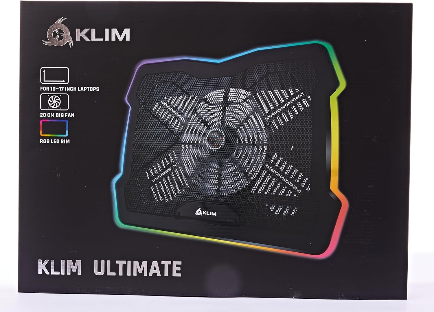 KLIM Ultimate - Охолоджувальна підкладка для ноутбука з RGB підсвічуванням - мо. 2024 - Кулер для ігрового ноутбука - Вентилятор із живленням від USB - Дуже стійка та тиха підставка для ноутбука - Сумісний до 17" - PC Mac PS5 PS4 Xbox One