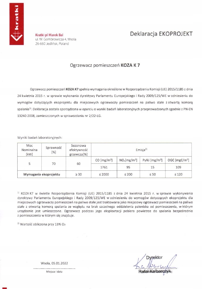 Виробник рекомендує використовувати колоди листяних порід дерев, таких як: бук, граб, дуб, вільха, береза, ясен тощо з розмірами колод або колод: приблизно 30 см в довжину та приблизно від 30 см до 50 см в окружність. - вологість деревини, яка використовується для опалення приладу, не повинна перевищувати 20%, що відповідає деревині, витриманій 2 роки після рубки, що зберігається під дахом.
