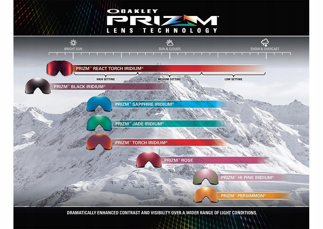 Найважливішою особливістю нових окулярів Oakley Prizm є підвищена контрастність, яка була спеціально адаптована до характеристик снігу. Завдяки цьому була вирішена одна з найбільших проблем, з якою стикаються любителі зимових видів спорту - видимість могулів, льоду та рельєфу. Крім того, лінзи за технологією Prizm ідеально підходять для широкого діапазону погодних умов, що робить окуляри з цим типом скла більш універсальними і не потребує заміни скла при зміні погоди.