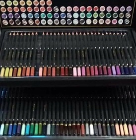 Гарний, елегантний набір із 68 кольорових олівців у дерев’яній дворівневій валізі/коробці