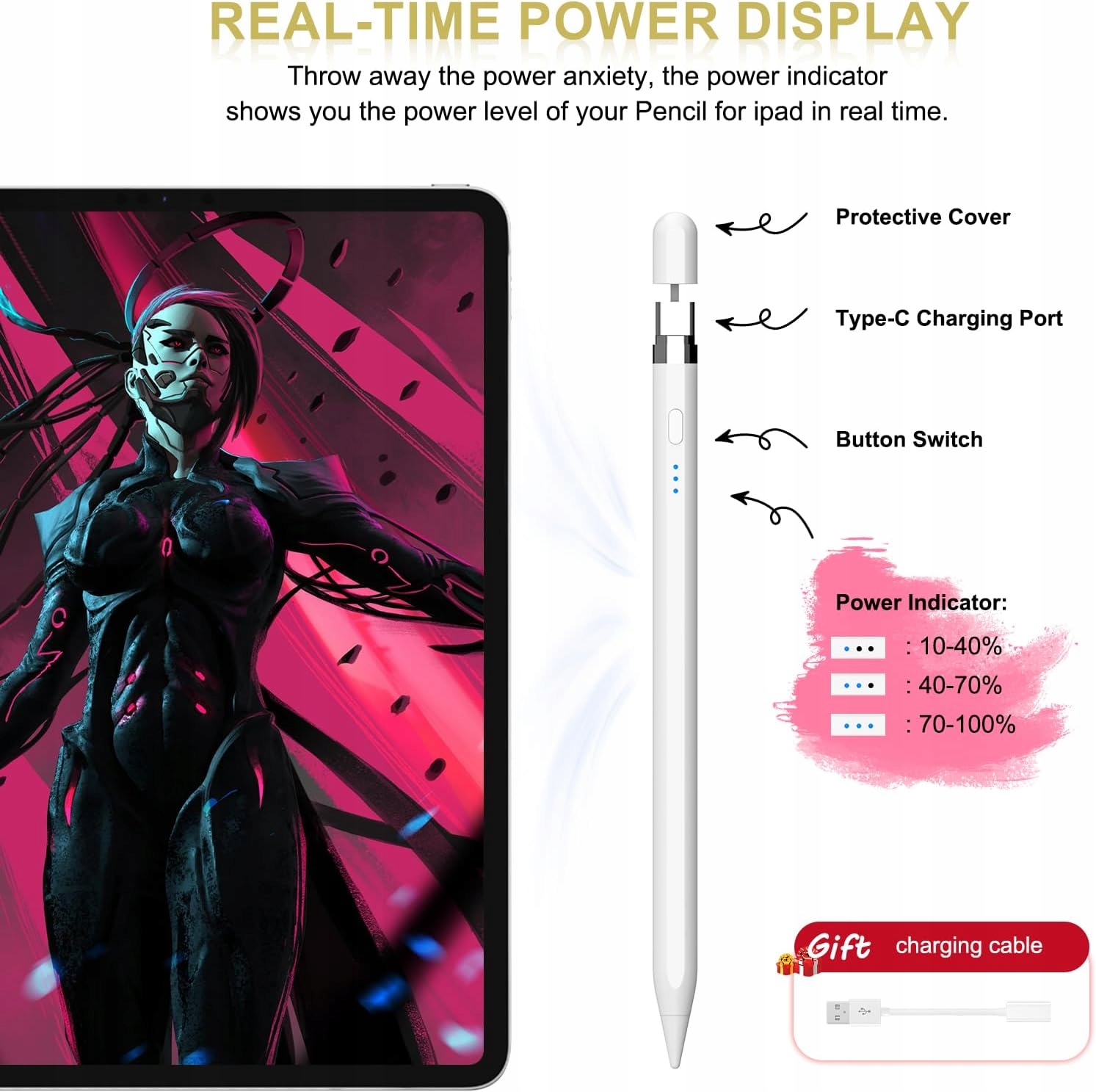 - Сумісна з iPad 2018-2024: Цей креслення Stylus 1. Покоління сумісне лише з 2018 року та нових версій iPad, будь ласка, перевірте перед покупкою. Сумісні версії iPad в Apple iPad 6/7/8/9/10, iPad Mini 5/6, iPad Air 3/4/5, iPad Air M2 (11/13 "), iPad Pro M4 (11/13"), iPad Pro 1/3/4 (11 ") та iPad Pro 3/4/5/6 (12.9"). Методи зарядки, закриття олівця iPad 1. Генерування безпосередньо до iPad або підключіть його до інших зарядних пристроїв, щоб зарядити його за допомогою порту зарядки USB-C. Побудований -in високий -батарея високої потужності. Вам потрібна канавча ipad 1. Покоління лише протягом 4-20 хвилин, щоб вчитися та працювати протягом дня. 4 1: 1 Відновлення олівця iPad 1. Покоління. Прорив у традиційних технологіях, що дозволяє писати та малювати iPad без паперу.