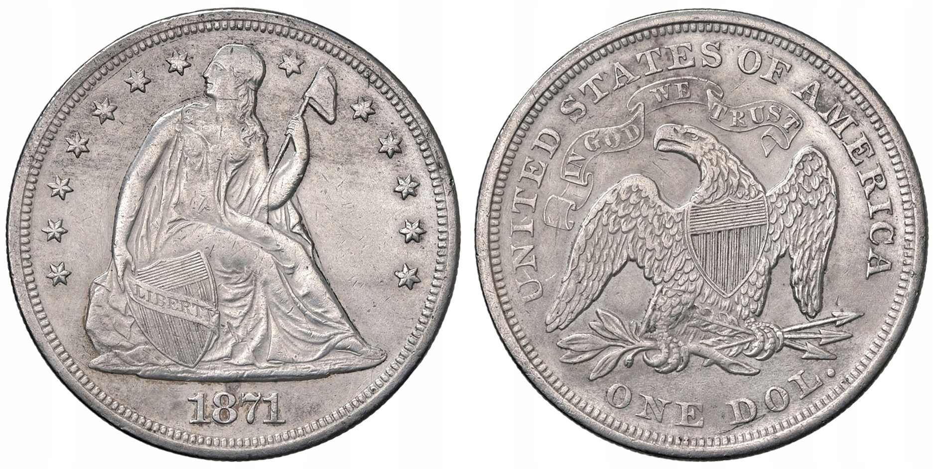 One Dollar 1 Dolar 1871 Siedząca Wolność 1860 Seated Liberty z motto