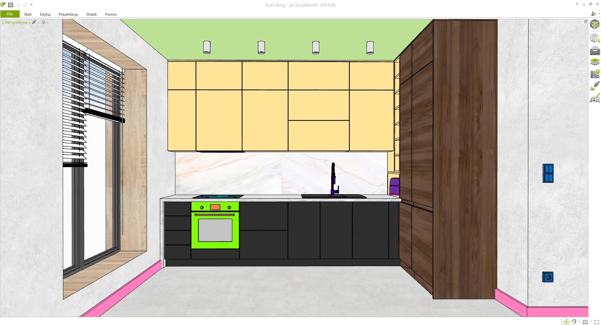 Ми Почніть курс з моделювання вітальні з міні-кухнею за допомогою безкоштовного програмного забезпечення pCon Planner. Потім ми експортуємо підготовлену модель до Artlantis, де доповнимо її додатковими моделями обладнання та переходимо до подальших етапів роботи на сцені.