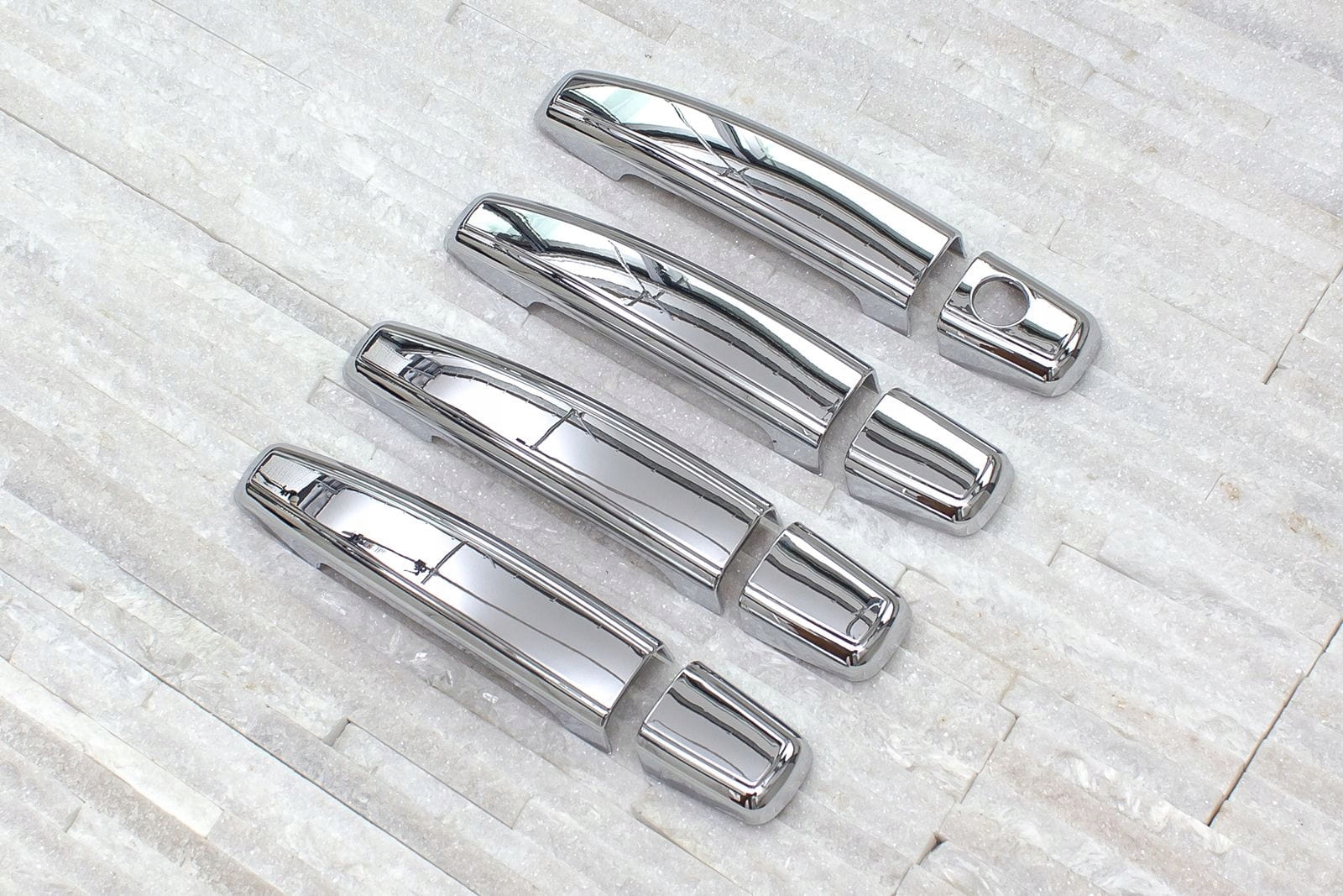 Декоративні хромовані накладки на дверні ручки є доповненням, яке доповнює стиль автомобіля ноткою спортивної елегантності. Ідеально підібрані до контурів автомобіля, вони змінюють образ дверних ручок, роблячи їх справжньою окрасою автомобіля. Виріб виготовлено з високоякісного хромованого ABS пластику.
