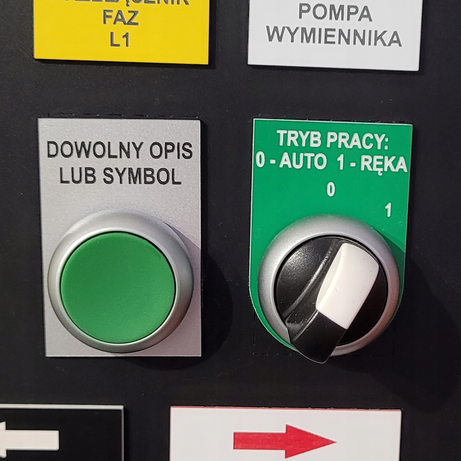 лазер, гравірування гравірування з товщиною 1,5 мм. Невідсильне, міцне та розбірливе маркування кнопок, ламп, управління M22. Призначений для ґудзиків Eaton, Schneider та інших. У стандарті 22 мм.