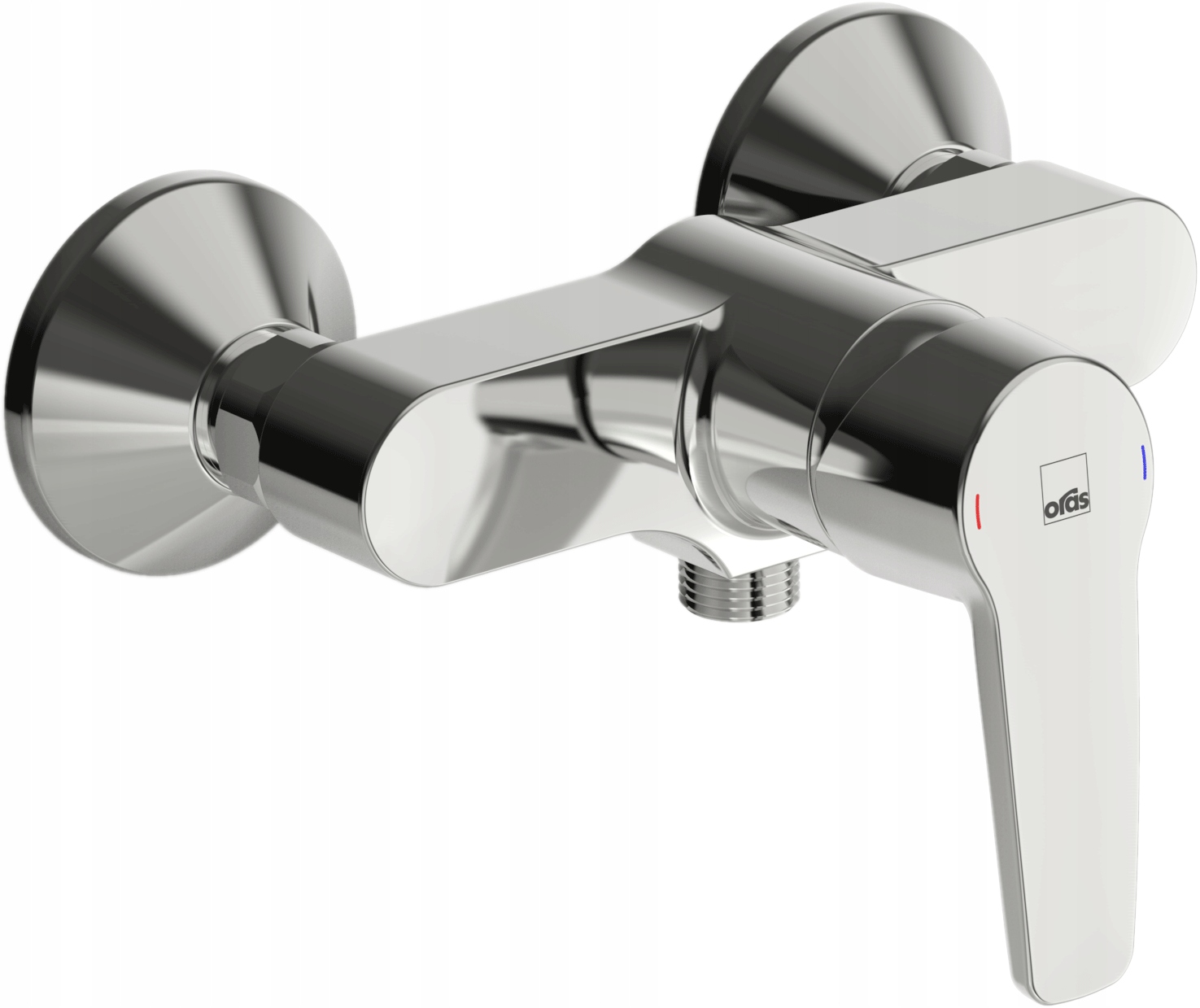 Змішувач для душу з ексцентриками та розетками, відстань підключення 150 мм. Також має вбудовану функцію обмеження витрати та температури води.