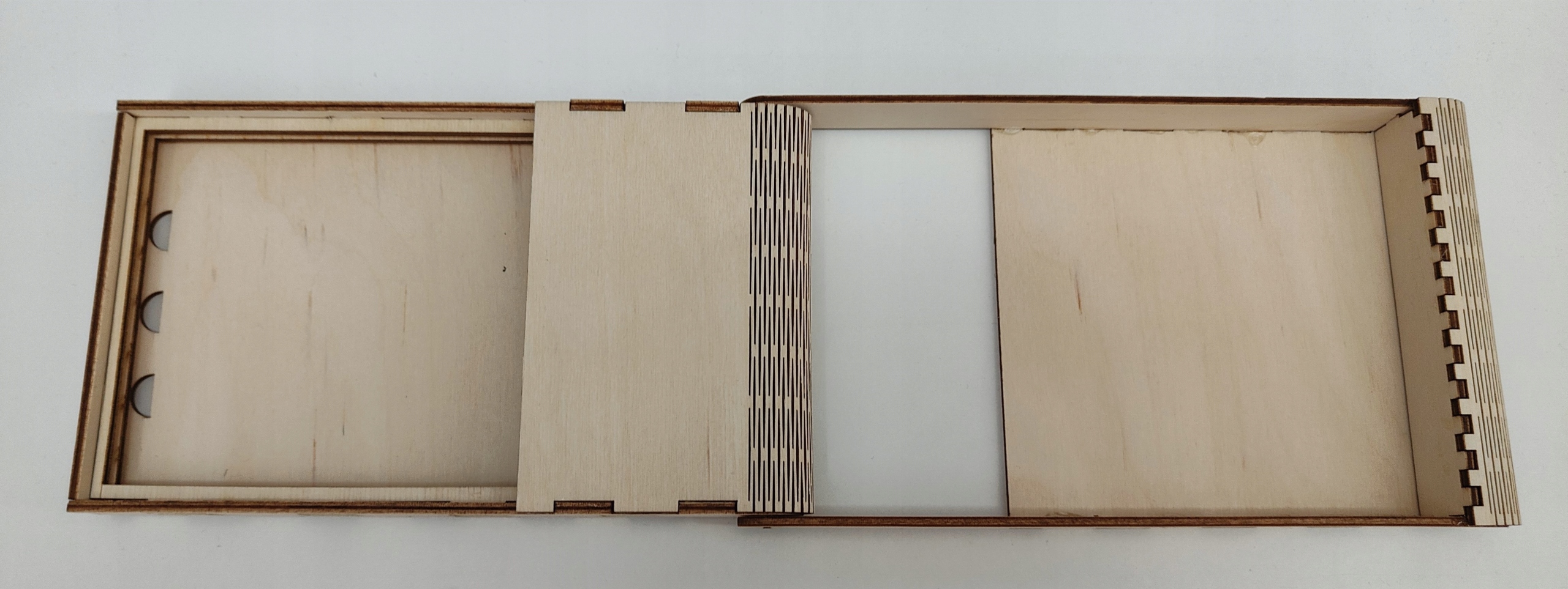 Ящик для інструментів виготовлено з фанери товщиною 3 мм, відшліфованої після вирізання. Петлі працюють дуже гарно, все відкривається і закривається однією рукою.