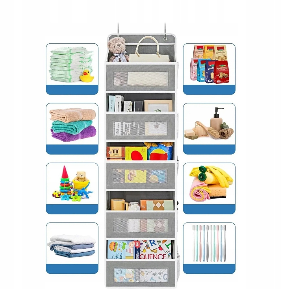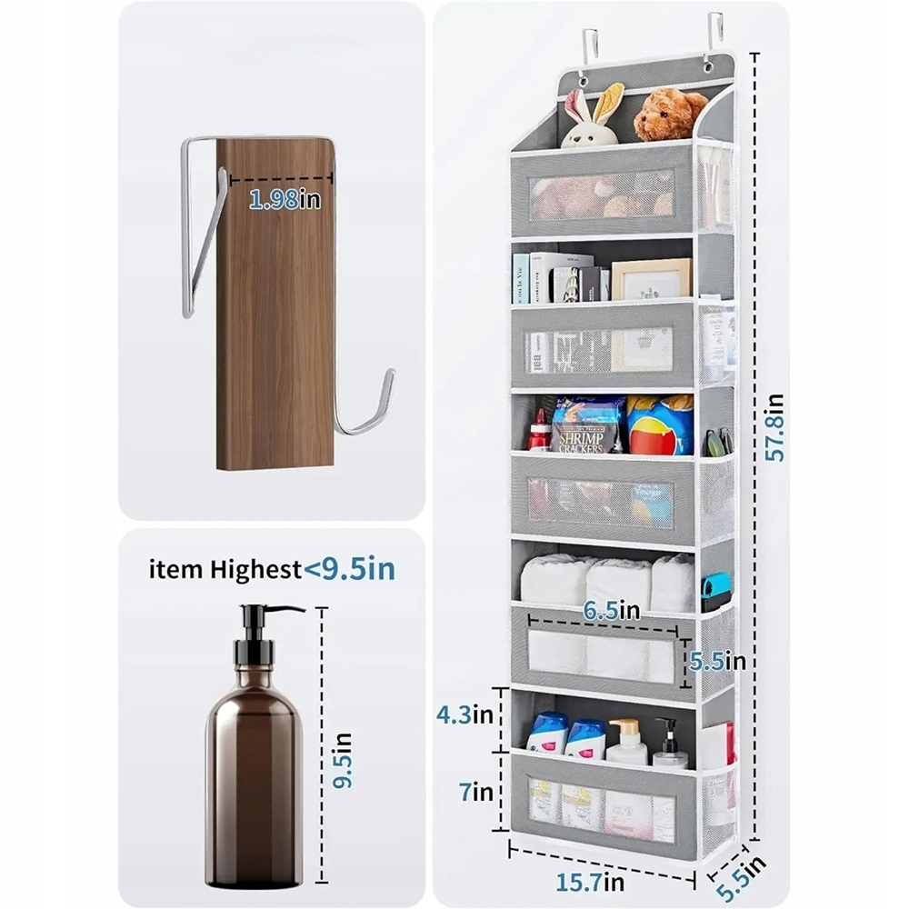 - П’ять просторих полиць: Організатор, що висить на дверях, має п’ять містких полиць, щоб полегшити організацію різних предметів.