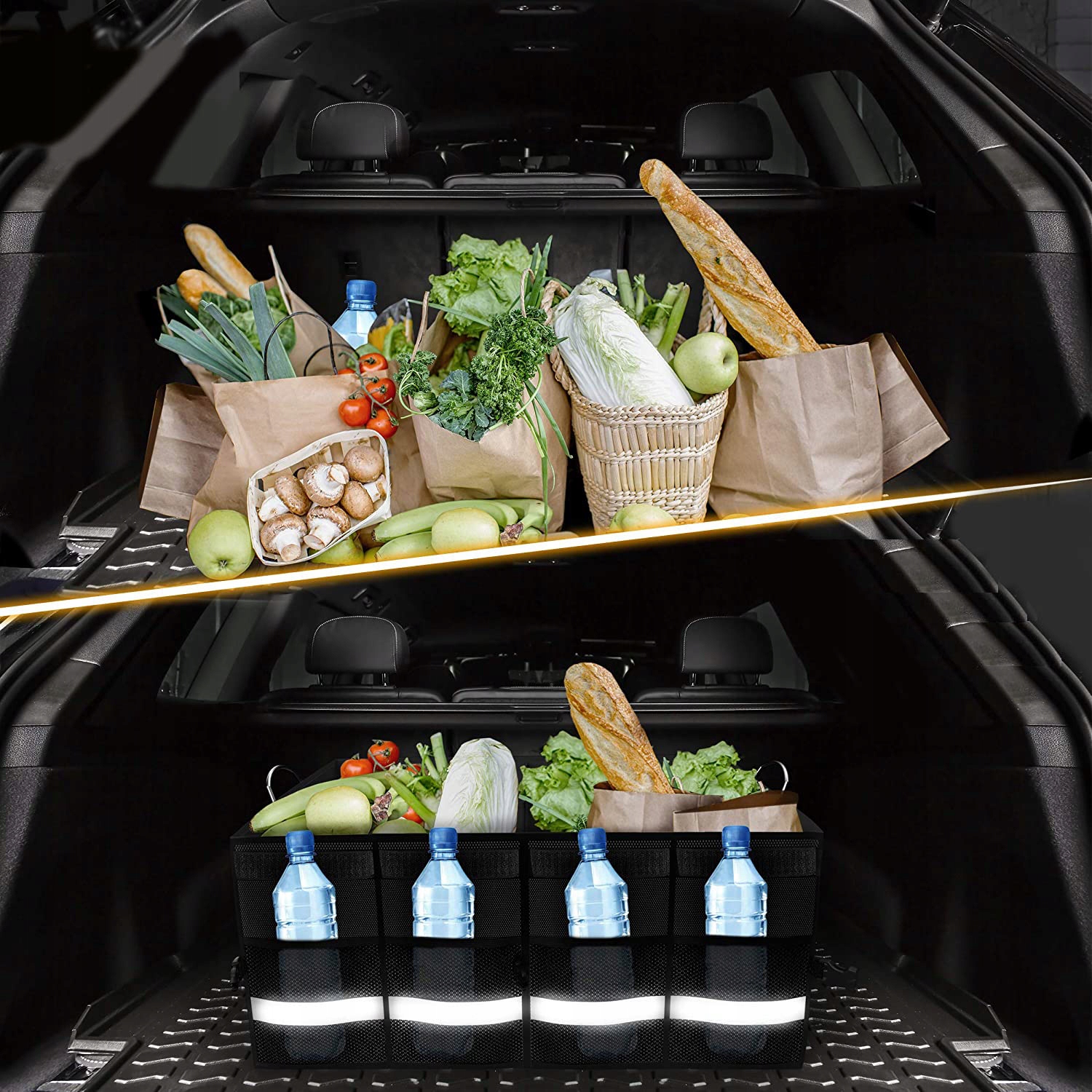 Сумка розділена на частини, ви можете зберігати всі речі, навіть дуже важкі гострі краї, наприклад, вогнегасник, аптечка, аварійний трикутник, масло, рідина для омивання вітрового скла, запасні лампочки, ключі, буксирний трос, троси тощо. Оснащено ручками для перенесення.