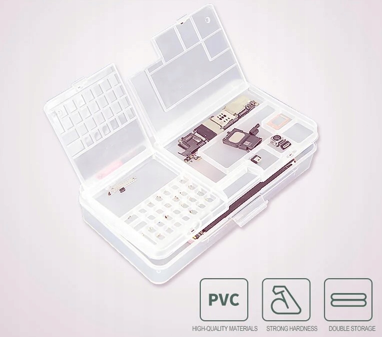 Сервісна коробка організаторів деталей (BST-W203)-це рішення, призначене для зручного зберігання та організації невеликих елементів при розміченні споживчої електроніки. Виготовлений з високоякісних матеріалів, гарантує довговічність та стійкість до пошкоджень. Завдяки ергономічному дизайну та чітким відсікам, користувачі можуть легко організувати свої предмети та швидко знайти їх у будь -який час.