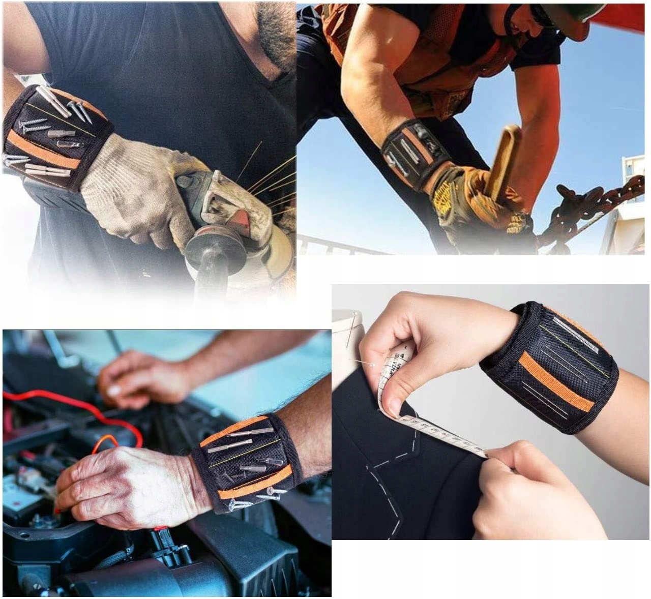Ремінь оснащений магнітними кишенями, в яких можна зберігати інструменти та матеріали. Завдяки цьому ви уникнете проблеми втрати дрібних елементів, які є ключовими під час роботи на будівельному майданчику. Ремінець простий у використанні та зручний у носінні — його можна носити на зап’ясті для свободи рухів та легкого доступу до інструментів.