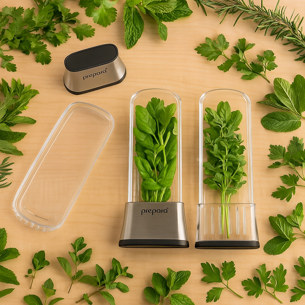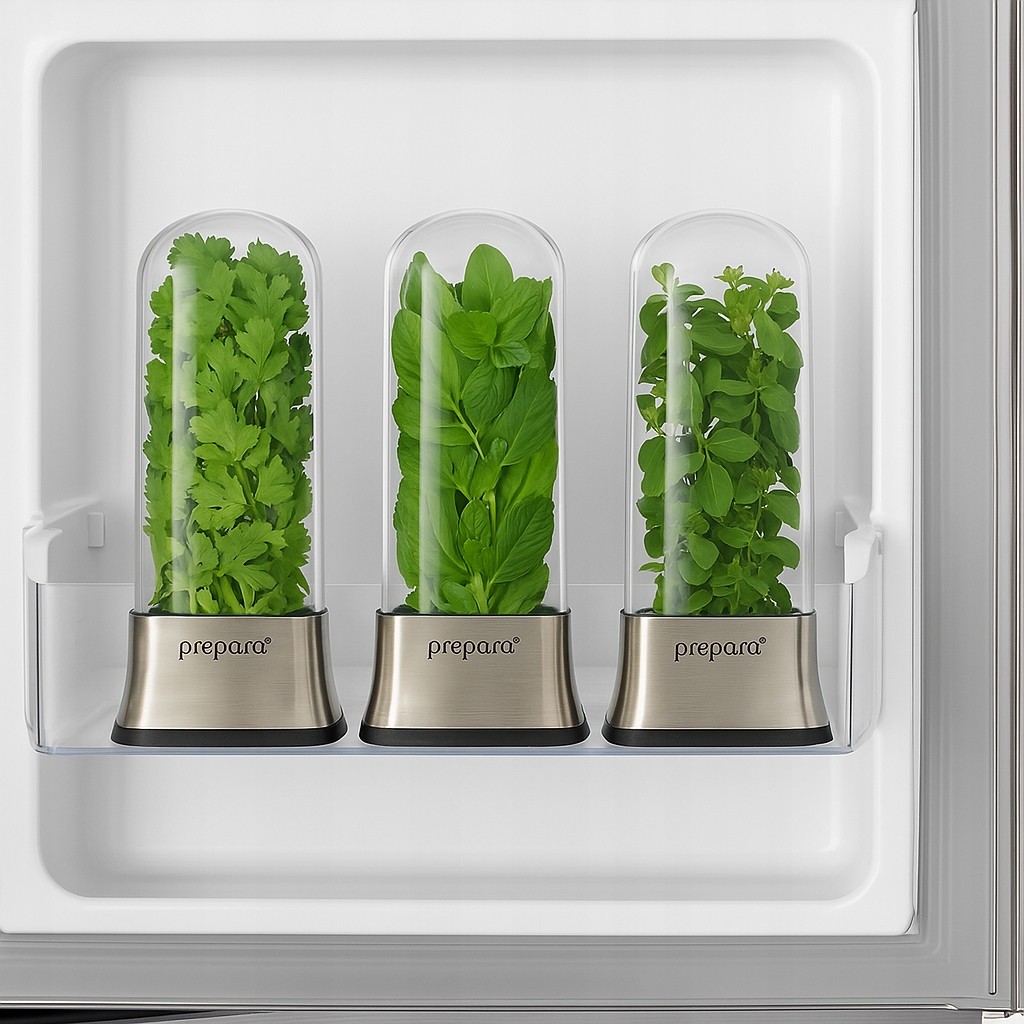 трав, що зберігаються в парниці Prepara, залишаються не лише свіжими, але й повними харчовими цінностями та природними ефірними маслами , які надають стравам глибокий смак та аромат. Завдяки адекватному зволоженню та захисту від сушіння трави зберігають свої здорові властивості довше - вони підтримують травлення, вони мають протизапальний та зміцнюють імунітет.