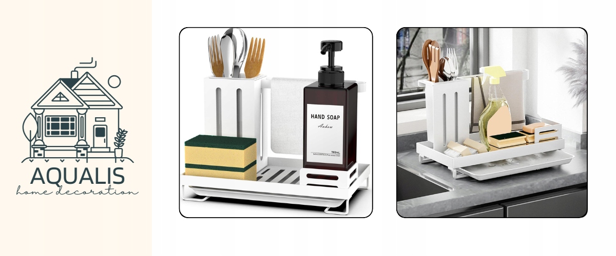 ОРГАНІЗАТОР КУХОННА МИЙКА КУХОННА СТІЯЧКА ДЛЯ ГУБОК ПОЛИЦЯ ПІДДОН ДЛЯ КАПЕЛЬ, БІЛИЙ