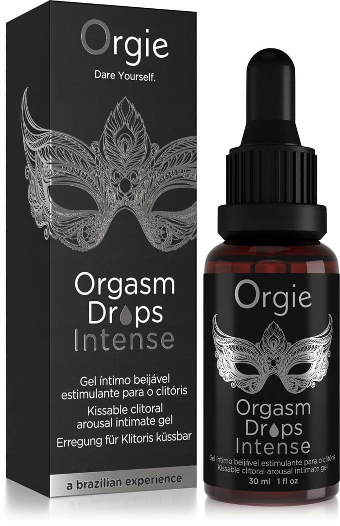Краплі Orgie Orgasm Drops знаходяться в маленькій скляній пляшці, і їх завжди можна точно відміряти за допомогою піпетки.