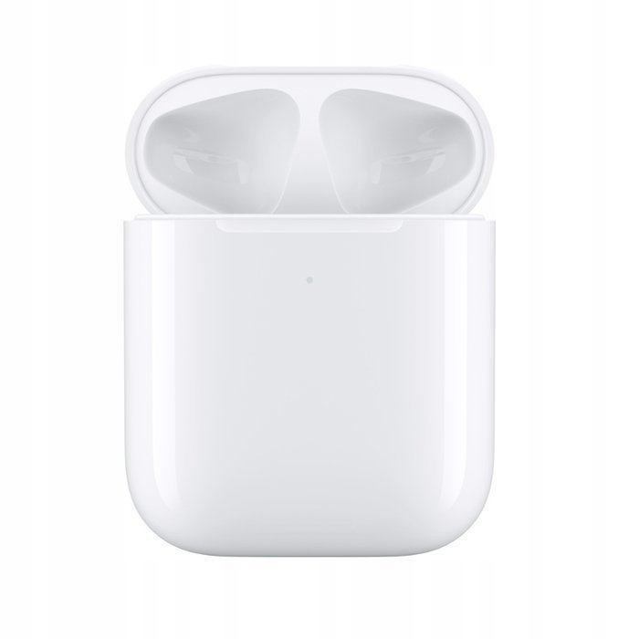 корпус бездротової зарядки - це оригінальний корпус зарядки для бездротових навушників AirPods. Корпус сумісний з усіма поколіннями AirPods, а велику кількість енергії достатньо для кількох зарядів. Діод, розміщений спереду, повідомляє, коли навушники завантажуються. Корпус може бути заряджений бездротовим шляхом за допомогою індукційного зарядного пристрою відповідно до стандарту QI або через роз'єм блискавки.