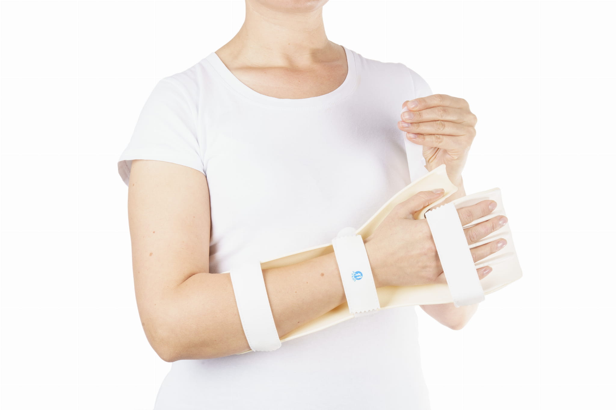 утворений з високоякісного жорсткого полімеру, він тонкий, легкий, але довговічний. Це легко чистити та обслуговувати. Він має анатомічну форму. іммобілізує руку у функціональному положенні під час регенерації, рівномірно підтримує руку, великий палець та передпліччя.