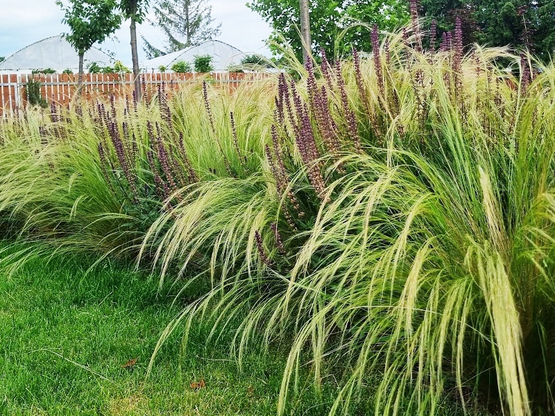 Тіні-остріка 'хвостики поні' (стип Тенуіссіма 'Поні' хвости ')-це ніжна декоративна трава, яка досягає висоти до 60 см, і під час цвітіння, коли з’являється помилкова, вона може вирости до 70-80 см. Його скупчення товсті, і тонкі різьбові листя звисають, що надає рослині тонкий, легкий вигляд.