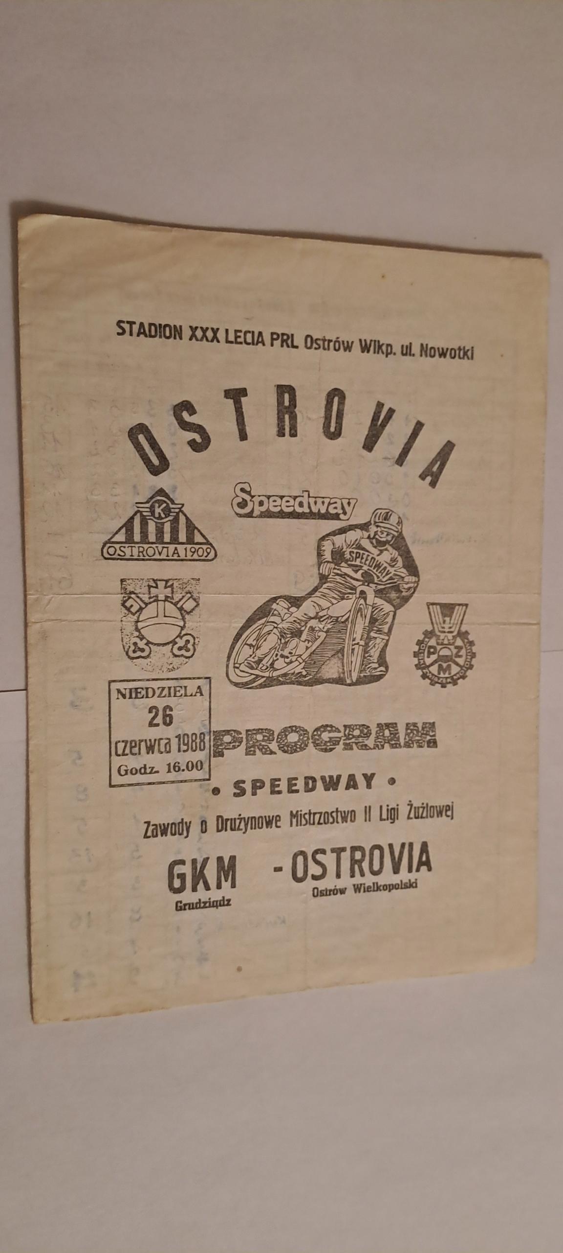 OSTROVIA ЛЕЗА WLKP - ГКМ ГРУДКА 26-06-1988 ШЛАКОВА ПРОГРАМА ЗАПОВНЕНА