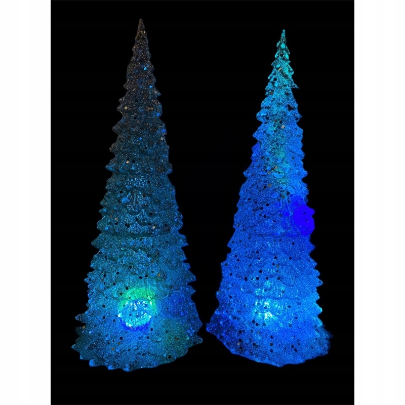 Ялинка виготовлена з пластику та світиться різними кольорами. Ялинка з акрилу, що змінює колір, живиться від батарейок, які можна замінити в будь-який момент, і лампа буде прикрашати ваш інтер'єр роками! Батарейки і вимикач знаходяться в підставці. Ялинка світиться різними кольорами.