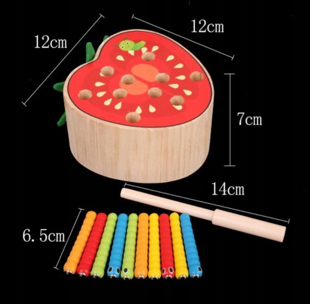 Центральний елемент цієї гри - це чарівні черв’яки та палички, які були обладнані спеціальними магнітами. Завдяки цьому унікальному рішенням, черв’яки та палички чудові, створюючи захоплюючий елемент динамічний геймплей. Гра полягає у використанні магнітних властивостей цих елементів, щоб точно витягнути черв’яка з фруктів , що є одним із елементів дошки. Це завдання вимагає навичок фокусування, терпіння та маніпуляції , що робить гру чудовою можливістю практикувати навички вручну.