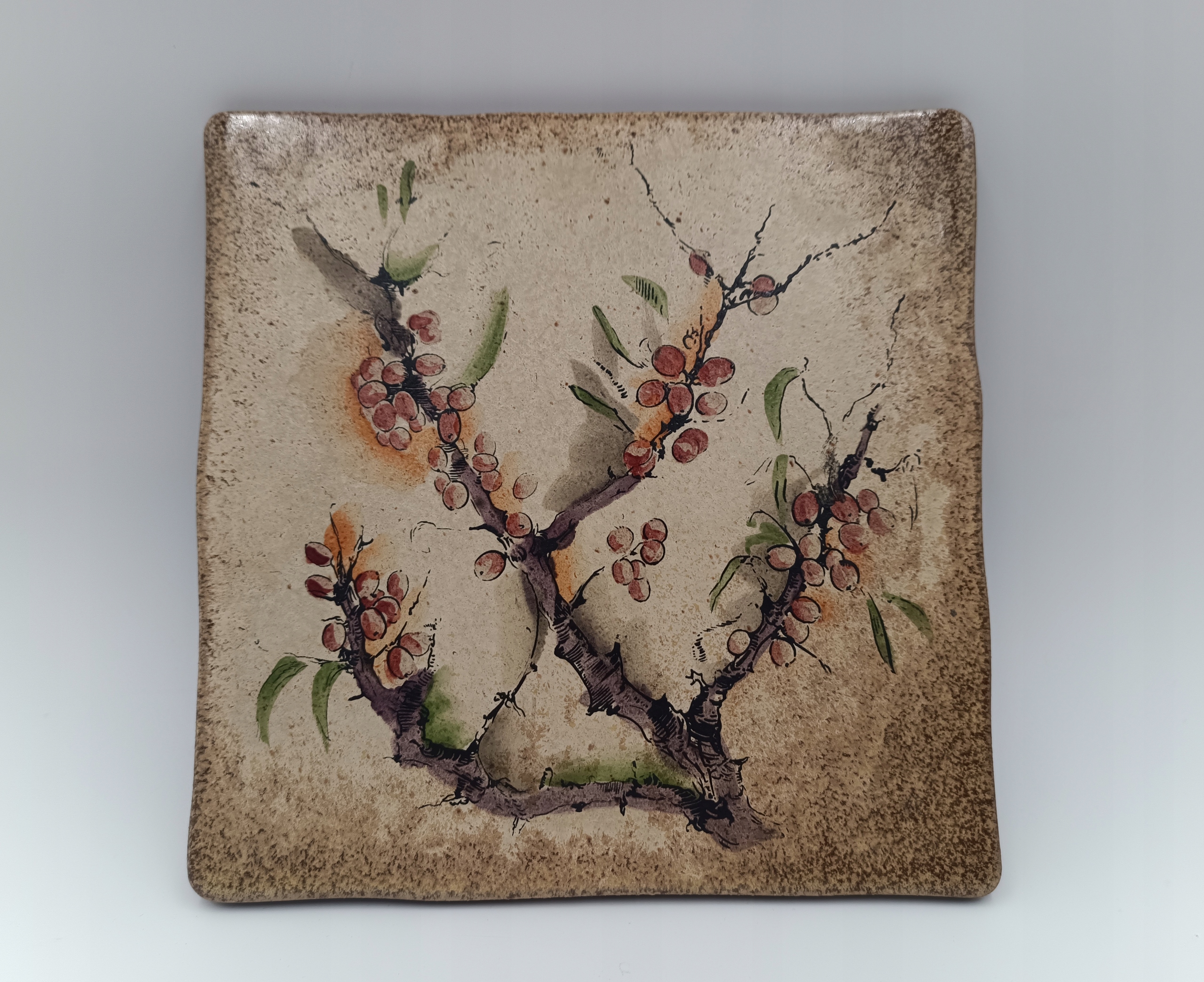 Ozdobna płytka ceramiczka japońskie drzewko życia jagody Goji vintage 20cm