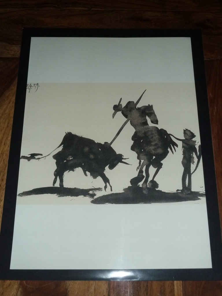 Я повинен запропонувати ілюстрацію Пабло Пікассо з серії "toros y toreros" (бик і торадори). 1980 р. Видання; Видання Cercle d'Arts в Парижі відповідали за друк. Видання на товстій папері "з років", з іншого боку аркуша ще одна ілюстрація циклу. Позиція ніколи не пов'язана, дуже хороша поведінка.