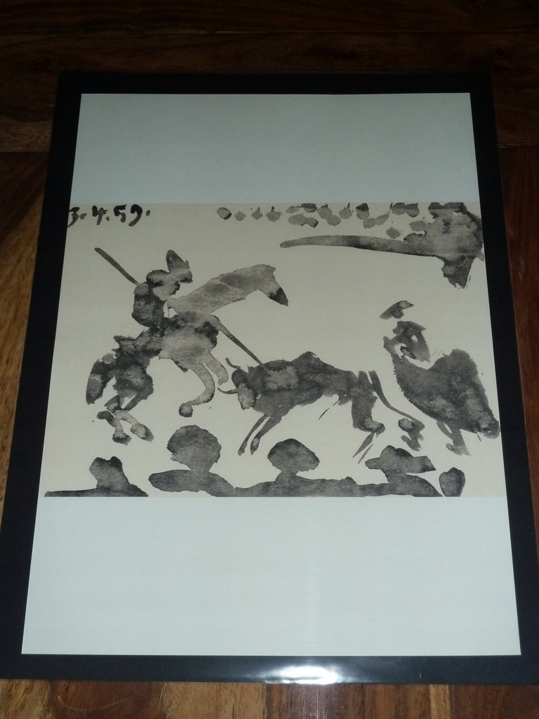 Я хочу запропонувати ілюстрацію Пабло Пікассо із серії "Toros y Toreros" (Бики та тореадори). 1980 р. видання; Видання Cercle d'Arts у Парижі відповідало за друк. Видання на цупкому папері «з років», на другій стороні аркуша ще одна ілюстрація із серії. Предмет жодного разу не оправлявся, стан дуже хороший.