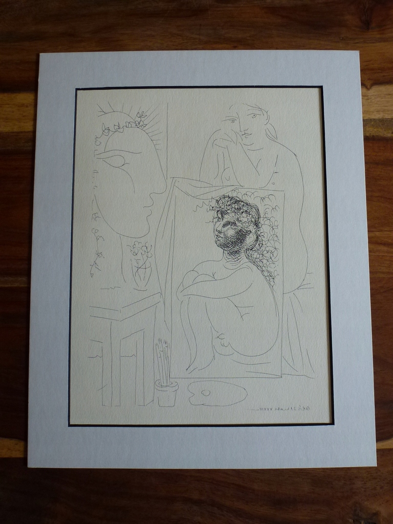 Я повинен запропонувати ілюстрацію Пабло Пікассо (1881-1973), опублікованій Гердом Хатже, Штутгарт із серії "Suite Vollard", видання, опубліковане під час життя художника та згоди в 1956 на папері " взяті на мене і показують справжню умову об'єкта.