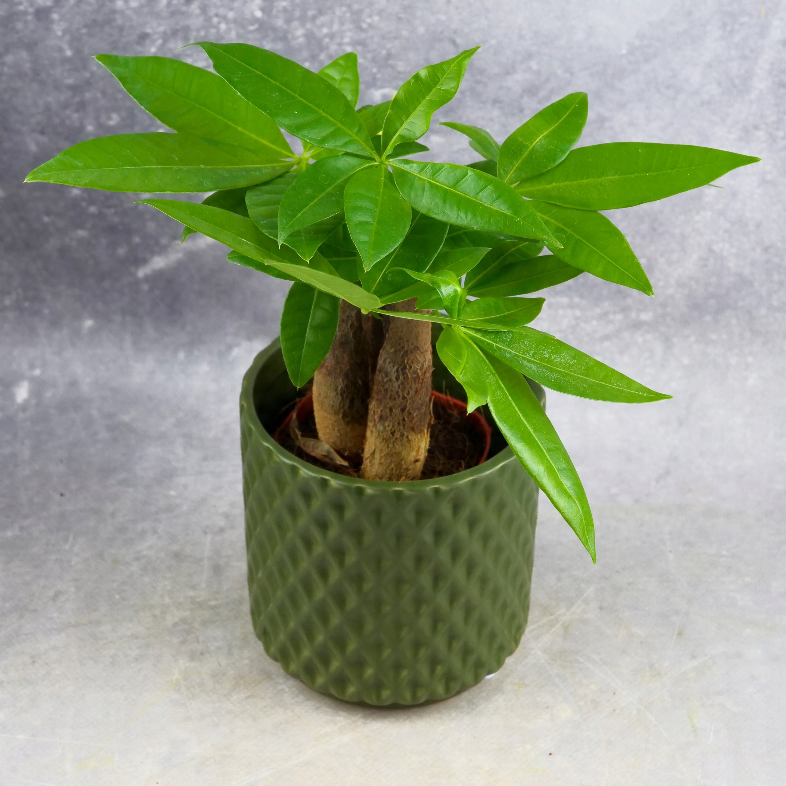pachira aquatica , також відоме як дерево щастя або дерево грошей - надзвичайно декоративний горщик. У культурі фен -шуй вважається, що він приваблює хорошу енергію, багатство та успіх , що робить його ідеальним вибором для квартир, офісів та офісів. �