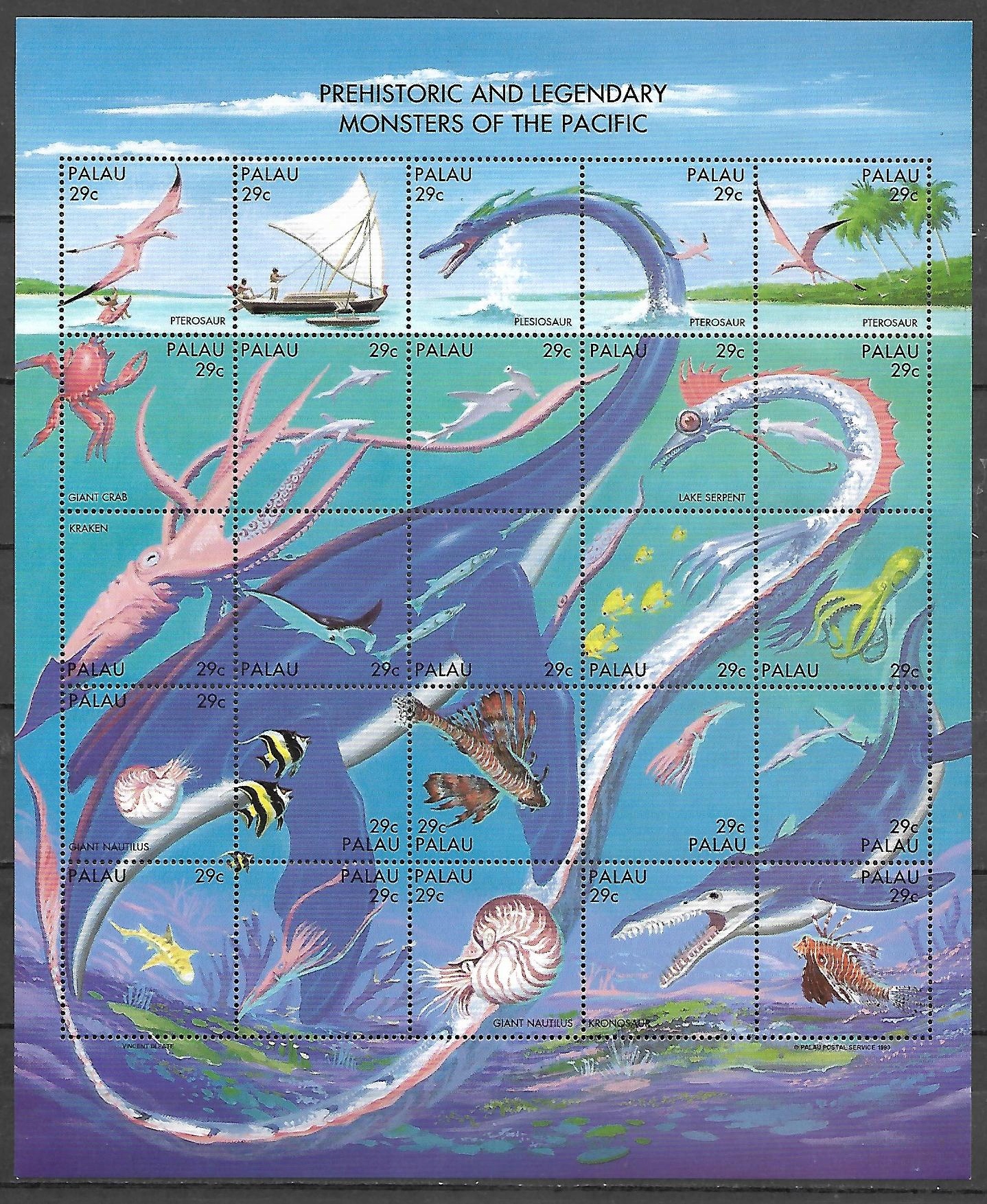 PALAU -Prehistoryczne i legendarne potwory morskie 1993** Mi 633-57 (1157)