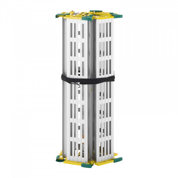 Міцна конструкція пандуса виготовлений з міцного алюмінію. Він розрахований на навантаження до 500 кг. Протиковзка поверхня ідеально підходить до гумових коліс діаметром більше 20 мм. Не рекомендується використовувати жорсткі колеса, які можуть пошкодити поверхню.