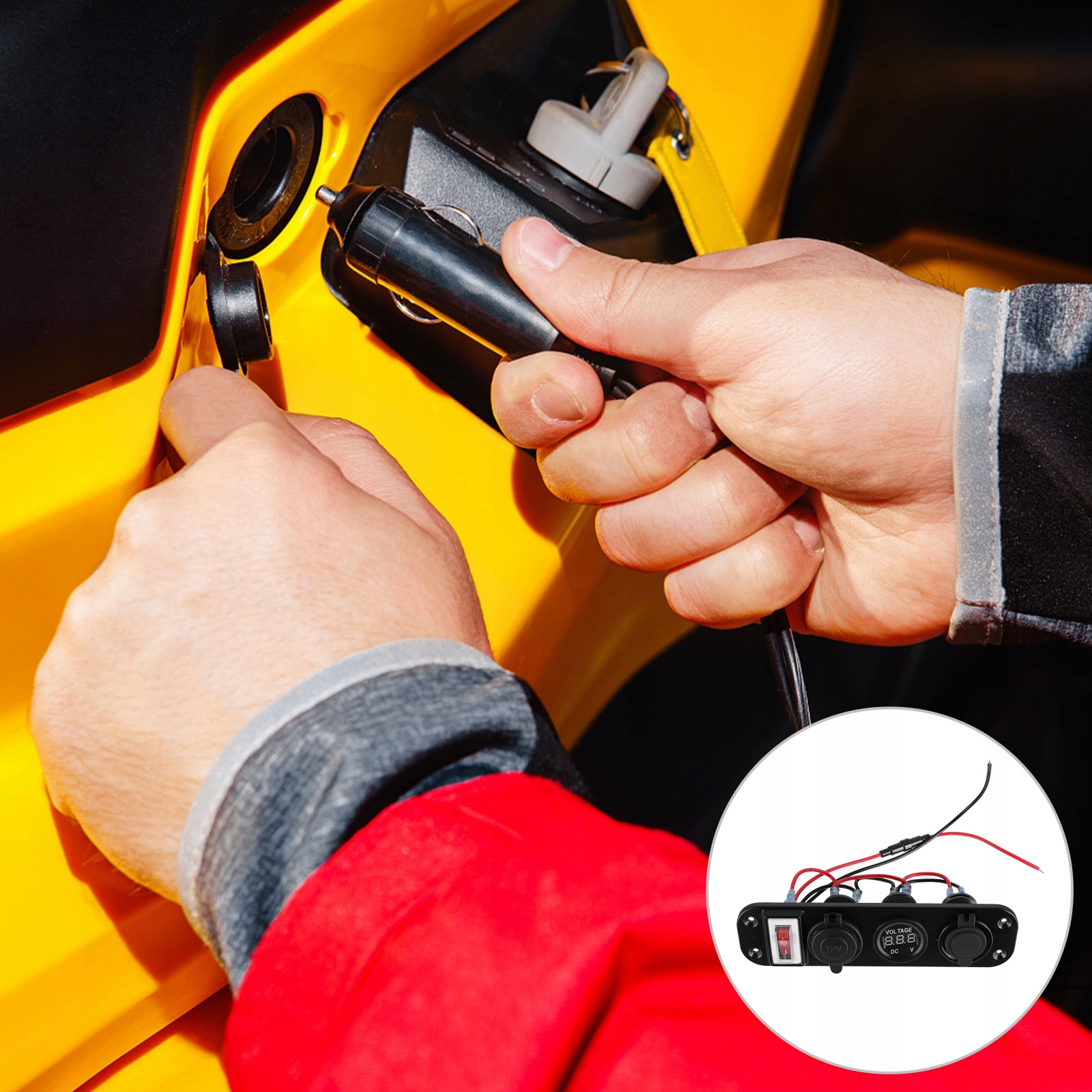 ✅ten з трьома отворами містить зарядний пристрій з USB -розеткою, вольтметр з кольоровим світлодіодним дисплеєм та електричною розеткою. вільно відключений, щоб замінити інші розетки зарядних пристроїв або щось інше, що підходить. Він має два порти для зарядки USB.