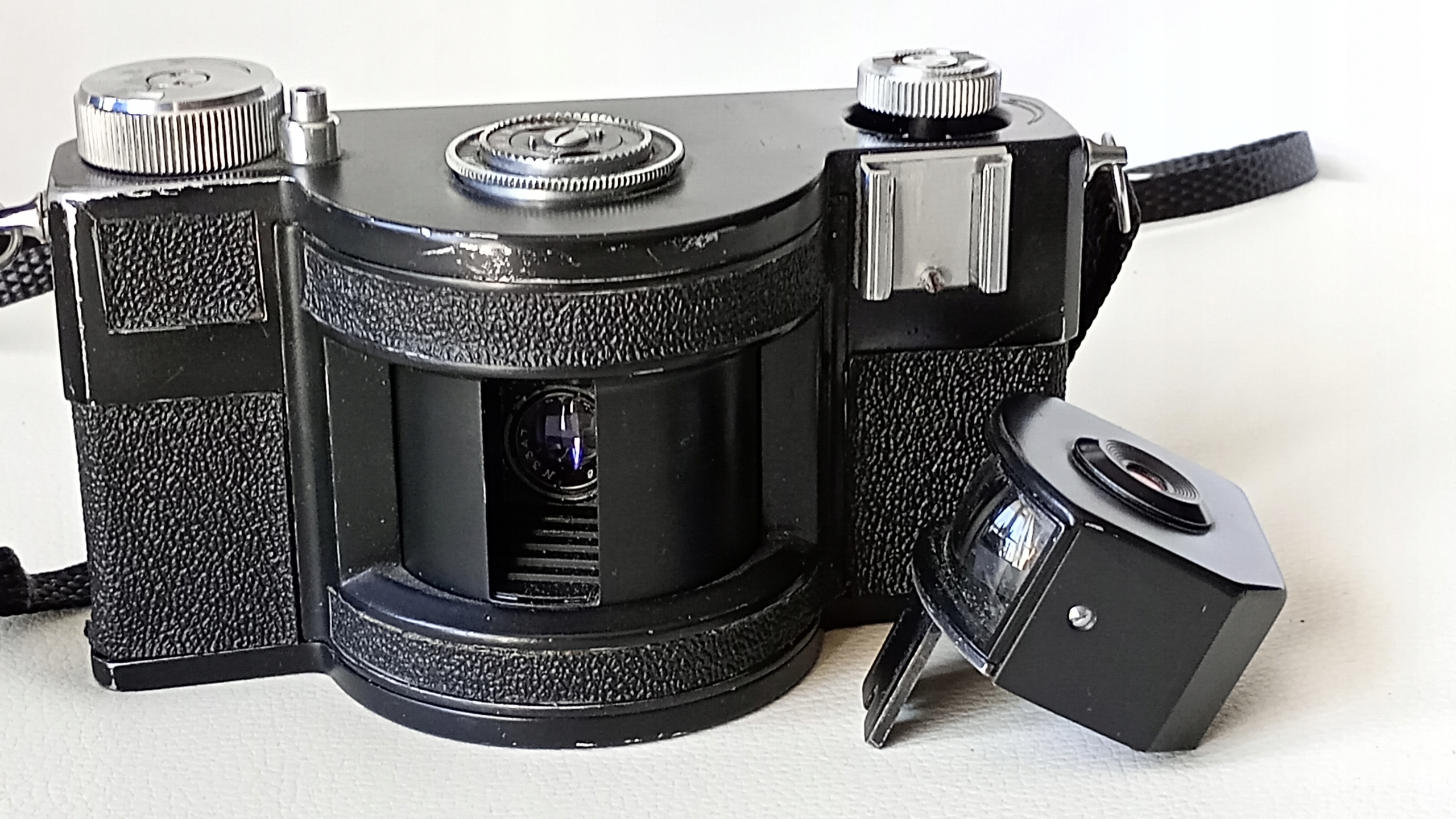 Це абсолютно унікальна чорна версія відомого фотоапарата, настільки унікальна, що відомі колекціонери підходять до цієї моделі з деякою стриманістю / можливо, її перефарбували? / , але зачорнені деталі наводять на думку про справжність фотоапарата в цій версії в каталозі російських фотоапаратів.