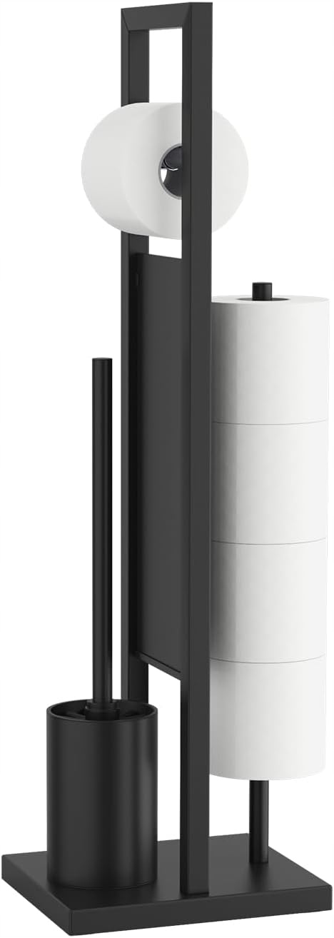 - Преміум -матеріал: Вільний власник туалетного паперу та набір туалетної щітки виготовлені з 304 нержавіючої сталі, він водонепроникний і стійкий до іржі, підходить для вологого середовища, таких як ванна кімната. Вертикальний стрижень забезпечує місце для максимум 3 рулони туалетного паперу. Розташований поруч із туалетом, він економить місце. База вистелена некоспильними прокладками, завдяки яким тримач туалетного паперу може бути розміщений де завгодно, не ковзаючи. Просто підключіть підставку для туалетного паперу до основи, легко перенести її в будь -яке місце. Ідеально підходить для кожної ванної кімнати. Фото показує фактичний стан упаковки.