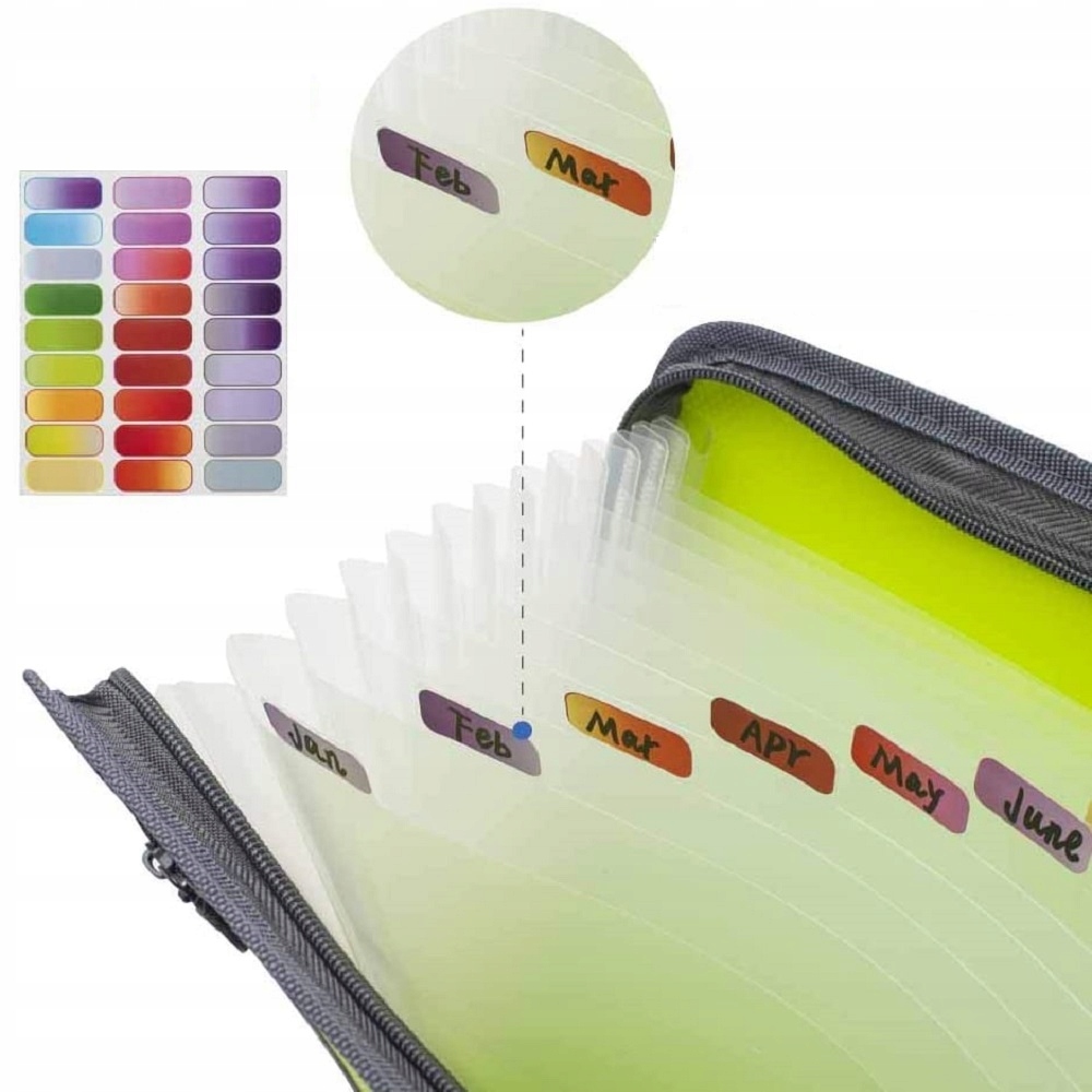 Папка для документів зеленого водонепроникного організатора 13 відділень + наклейки