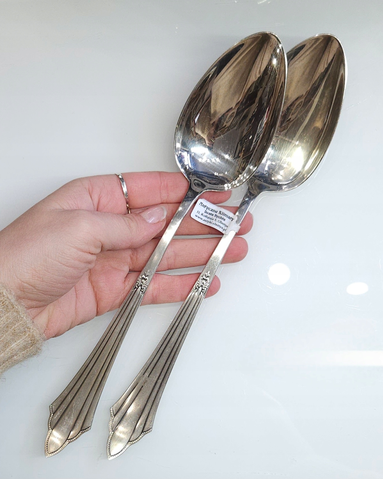 Пара срібних ложок обслуговування, шаблон вентилятора WMF, центр столу