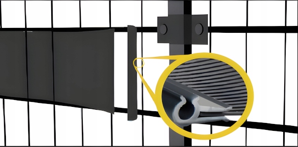Встановлення на затискачі надзвичайно просте та інтуїтивно зрозуміле - просто вставте стрічку в затискач, а потім закріпіть затискач на прольоті огорожі.