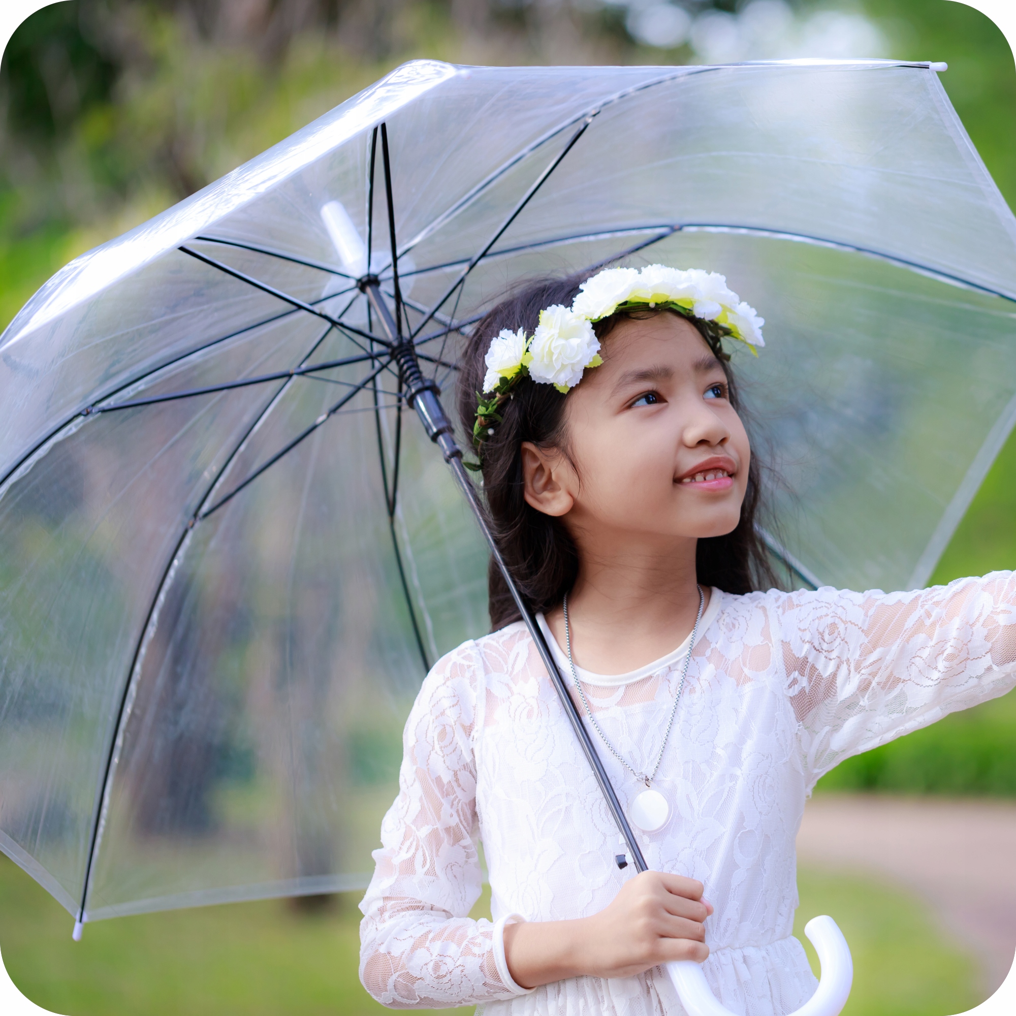 - парасолька буде працювати як під час щоденних виходів, так і для фотосесій як цікавого додавання та захисту, наприклад. весілля, сукня причастя або костюм. Завдяки зігнутої ручки, парасольку можна легко повісити на вішалку, що полегшує зберігати та капати з води.