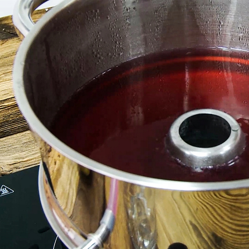 Поставте підготовлений набір на джерело тепла (газ, електрику). плита тощо) і повільно доведіть воду до кипіння. Коли вода закипить, зменшіть вогонь до такої міри, щоб навколо посудини не утворювався зайвий пар. Під дією пари, що утворюється, і підвищеної температури фрукти почнуть виділяти сік і накопичуватися в посудині № 2.