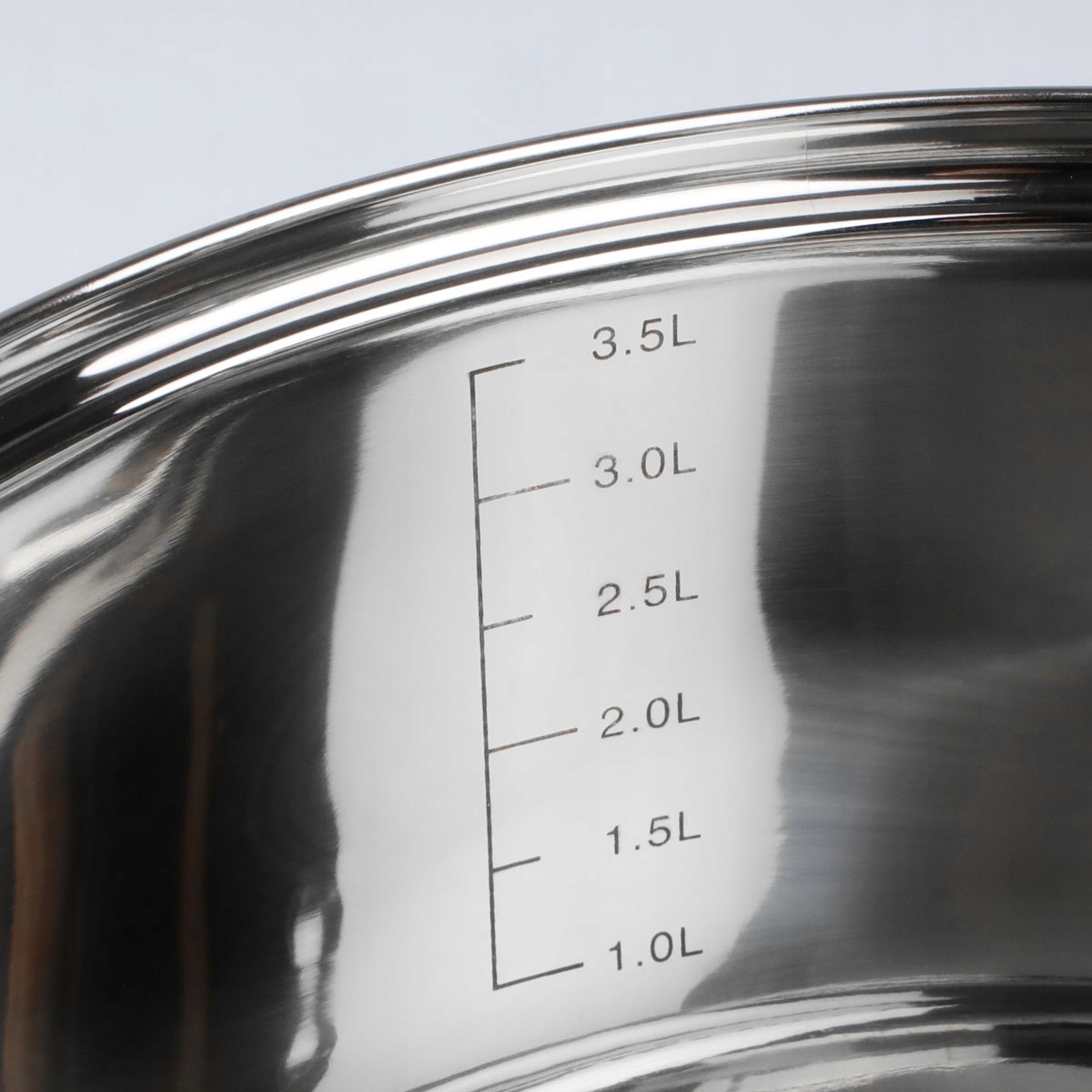 - базова каструля 22 см розміром 22 х 11,5 см і об’ємом 3,5 л і літр масштаб