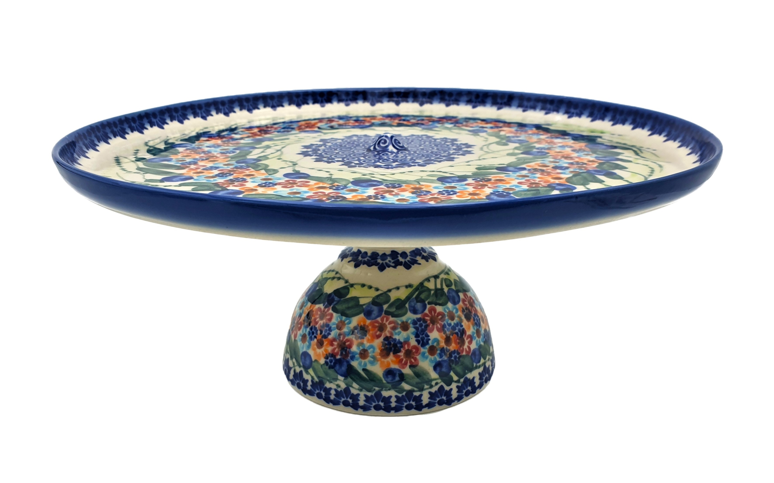 ТАРІЛКА ДЛЯ ТОРТА - РОЗПИСАНА В ТРАДИЦІЙНОМУ БОЛЕСЛАВІЦЬКОМУ ДЕКОРАЦІЇ - ДІАМ. 28 см/ВИСОТА 11 см.