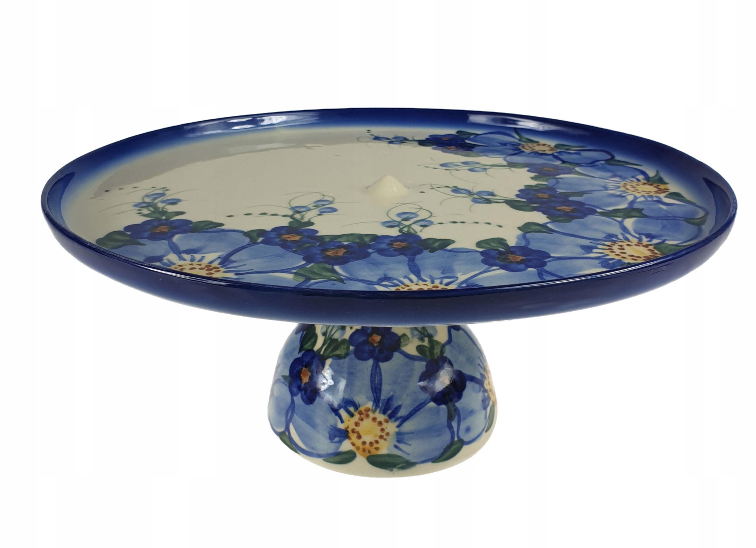 ТАРІЛКА ДЛЯ ТОРТА - РОЗПИСАНА ТРАДИЦІЙНИМИ БОЛЕШАВІЦЬКИМИ ОЗДОРАМИ - ДІАМ. 28 см/ВИСОТА 11 см.