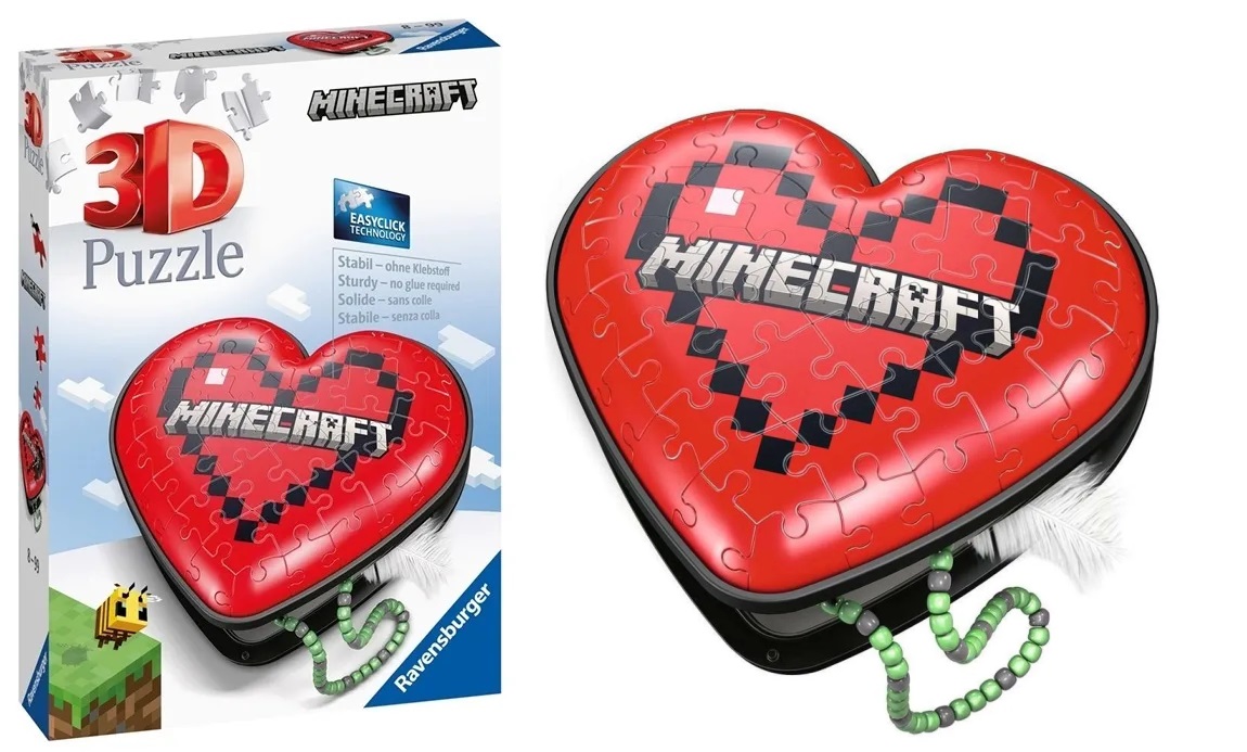 Коробка у формі серця з мотивом Minecraft — це конструкція для любителів однойменної 3D-гри-головоломки title поєднує приємне з корисним, розвиває просторову уяву, а в зібраному вигляді служить декоративною скринькою для прикрас.