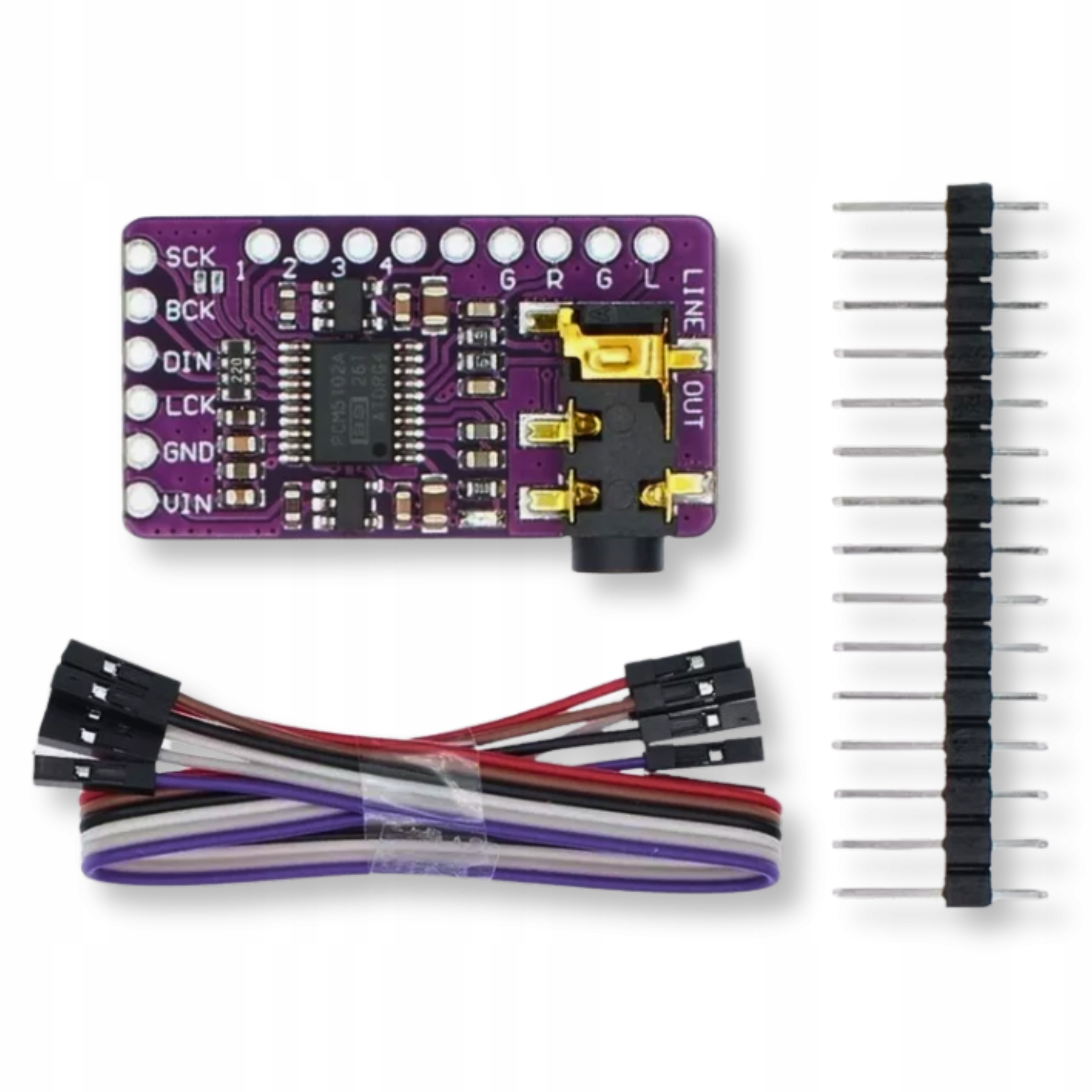 PCM5102A DAC -високоякісний цифровий -Аналог -конвертер для аудіо. часто використовується в проектах Yoradio. Це дозволяє перетворити цифровий сигнал в аналог, забезпечуючи чистий стерео звучання. Ідеально підходить для аудіопроектів, що потребують високоякісного звуку, він характеризується низьким рівнем шуму та спотворень.