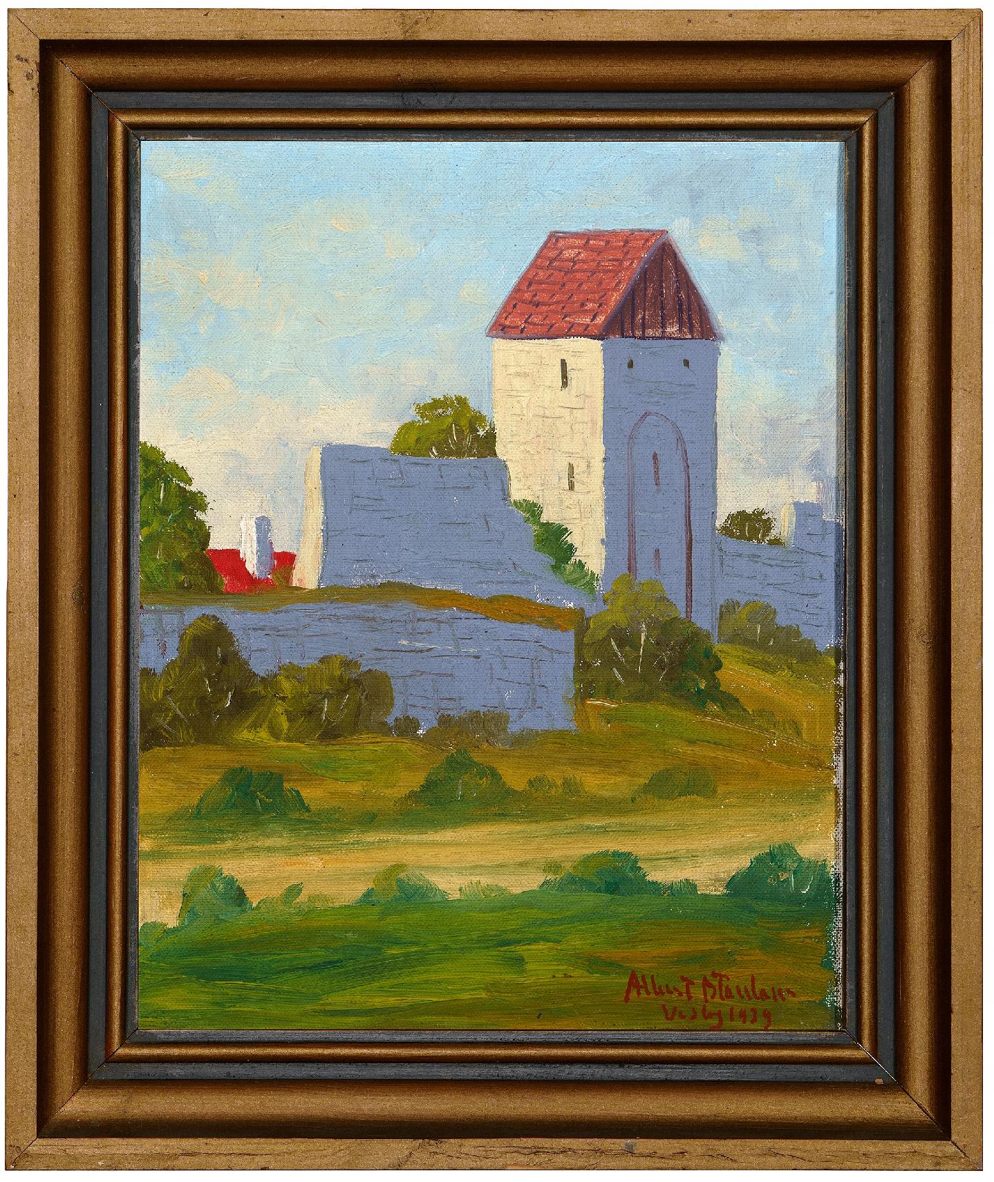 ПЕЙЗАЖ З ЦЕРКВОЮ 1939 ALBERT STANLOW СТАРА КАРТИНА